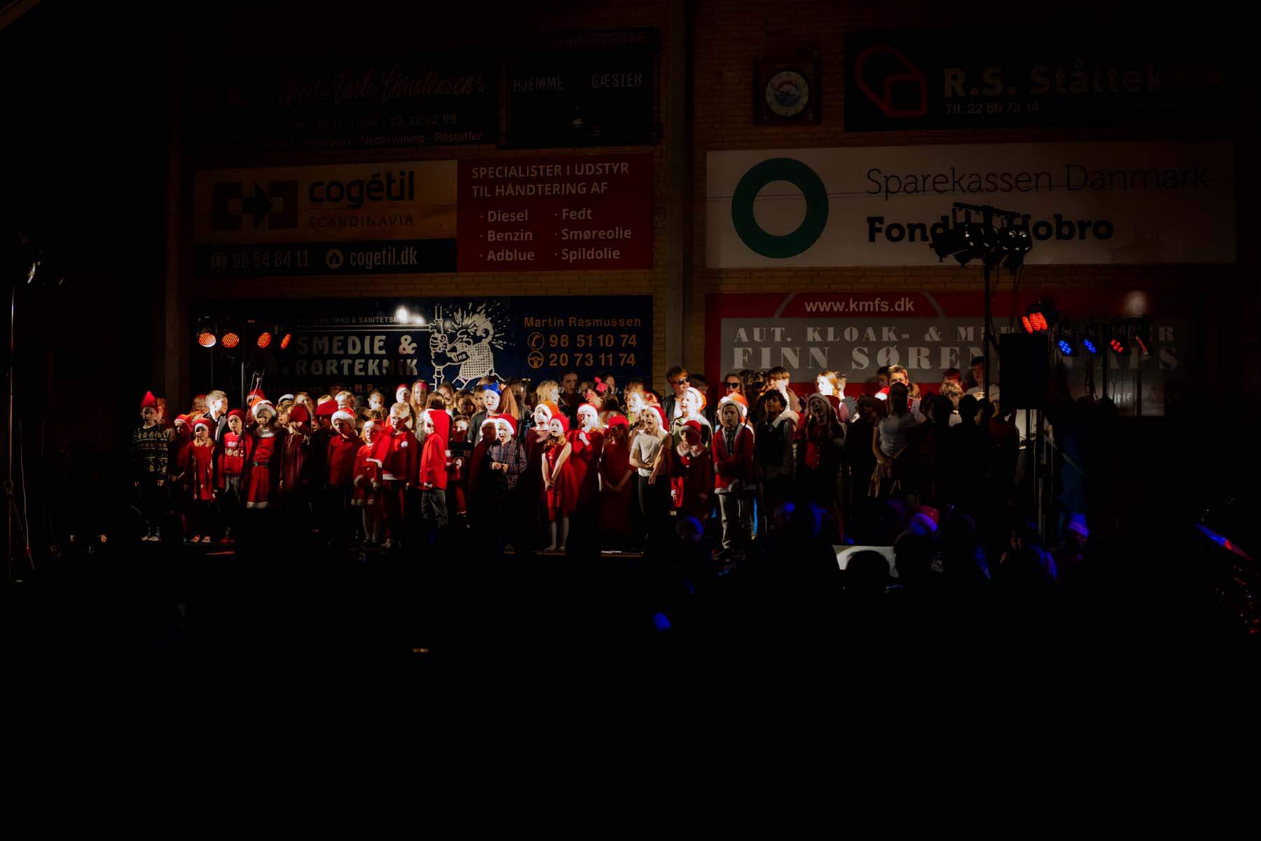Arrangementet begyndte klokken 16.30, hvor gæsterne ankom og kunne købe kaffe, te og drikkevarer. Skoleleder Flemming Frank Sørensen bød officielt velkommen, inden alle sang fællessangen “På loftet sidder nissen”.