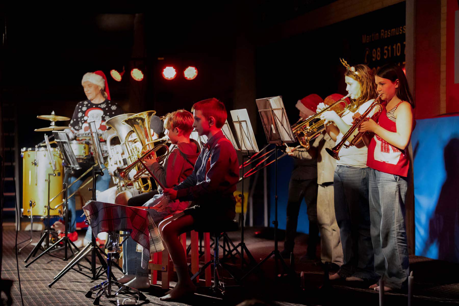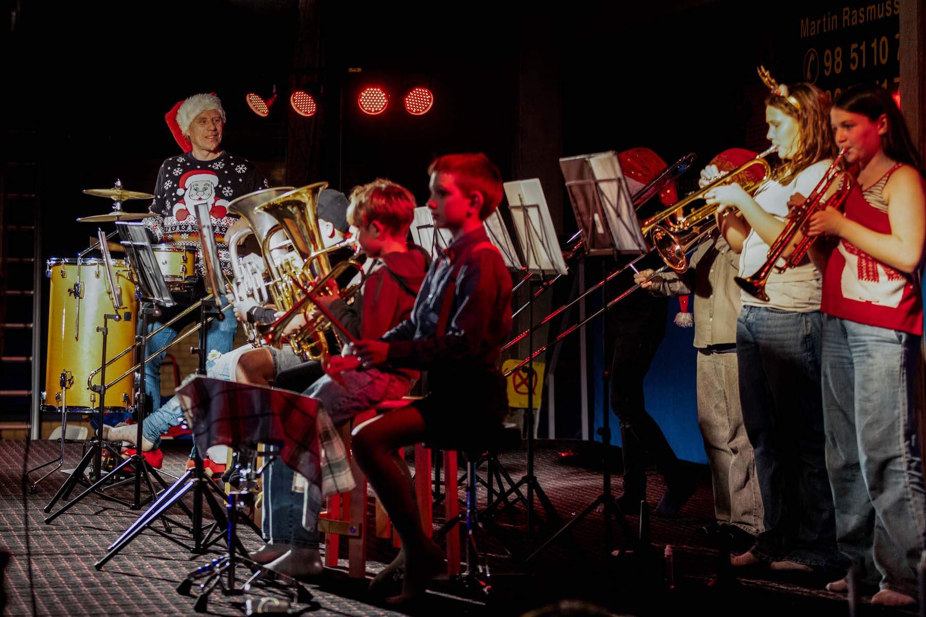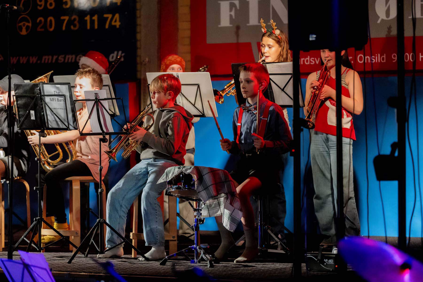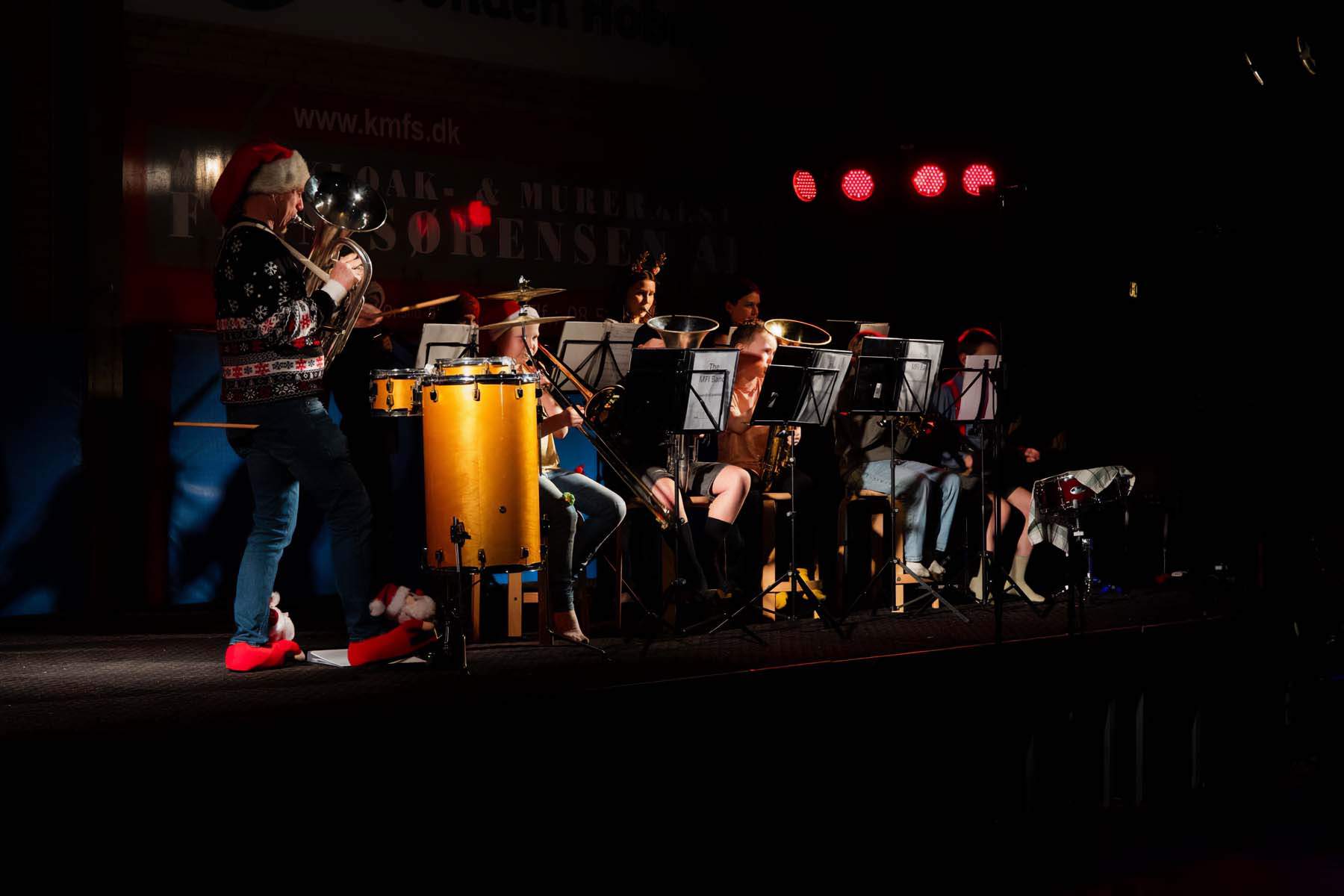MFI Bandet stod for musikalsk underholdning, og som en overraskelse gennemførte lærerne en stemningsfuld Luciasang i flotte udklædninger. Efterfølgende blev der danset om juletræet, inden julemanden kiggede forbi til stor begejstring for både børn og voksne.