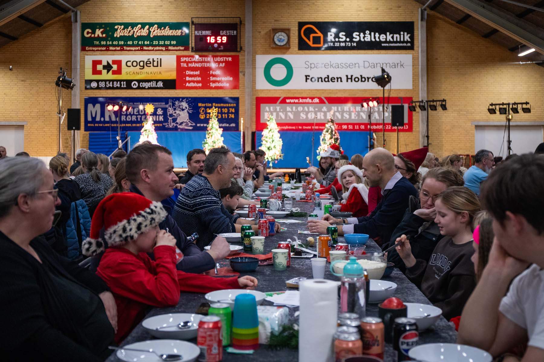 Torsdag den 11. december dannede Onsild Hallen rammen om en stor og stemningsfuld risengrødsfest arrangeret af Mariagerfjord Idrætsskole, hvor hele 425 deltagere var samlet. Elever, familier og borgere fra lokalområdet var inviteret til en eftermiddag og aften fyldt med julestemning, fællesskab og underholdning – en tradition, der endnu en gang viste skolens stærke bånd til lokalsamfundet.