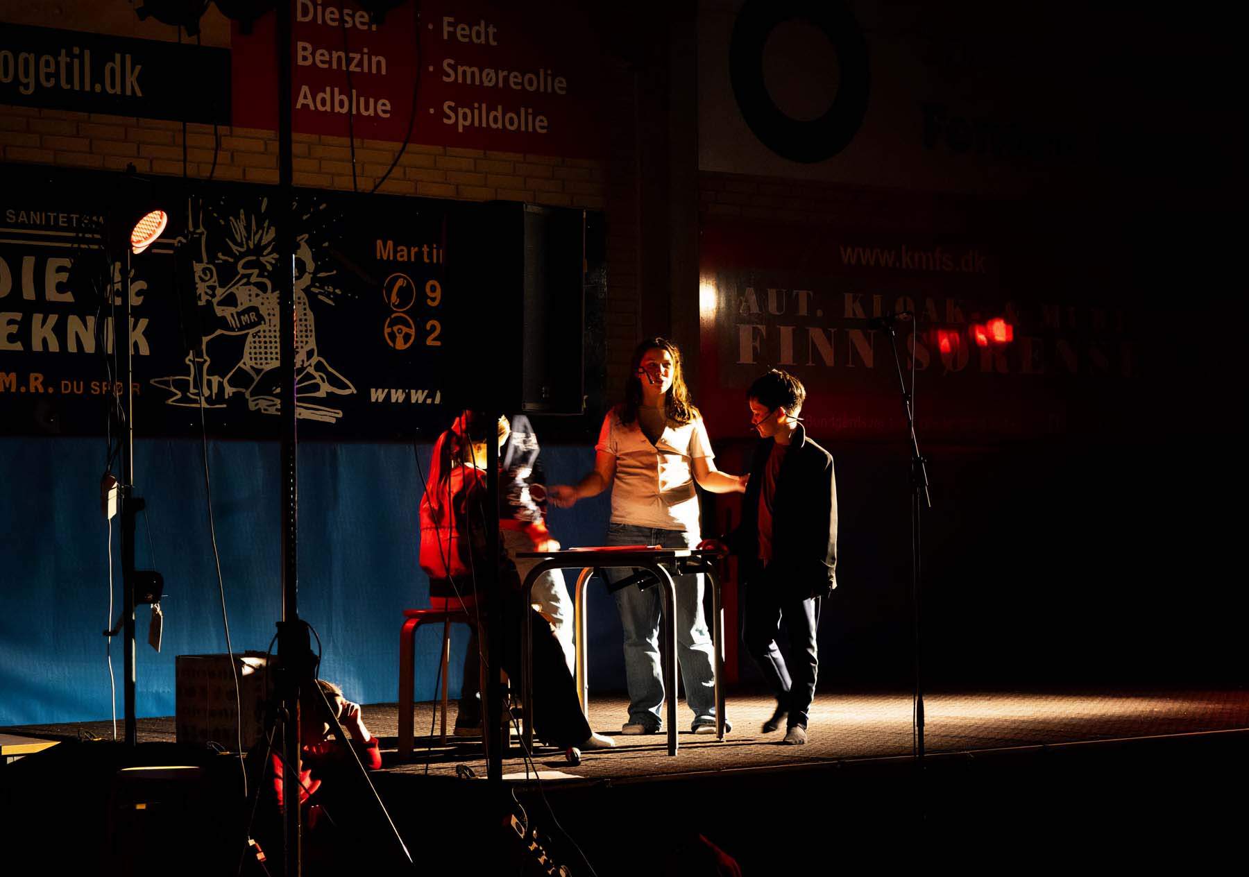 Efter spisningen var det tid til forestillingen “MFI’s tidsrejse”, hvor eleverne tog publikum med på en rejse gennem fire årtier. Forestillingen var opdelt i fire scener, spillet af forskellige klassetrin: