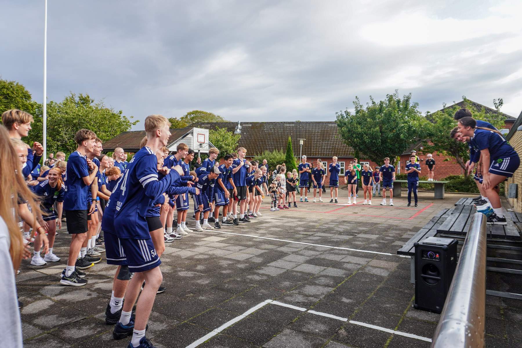 Opvarmningen blev leveret af efterskolens elever, som med højt humør og musik i højttalerne satte gang i kroppen på de mange fremmødte. Der blev hoppet og svinget med armene – og ikke mindst grinet, da børn og borgere i alle aldre forsøgte at følge med i de energiske øvelser. Allerede her var det tydeligt: Det handler ikke om at vinde, men om at være med.