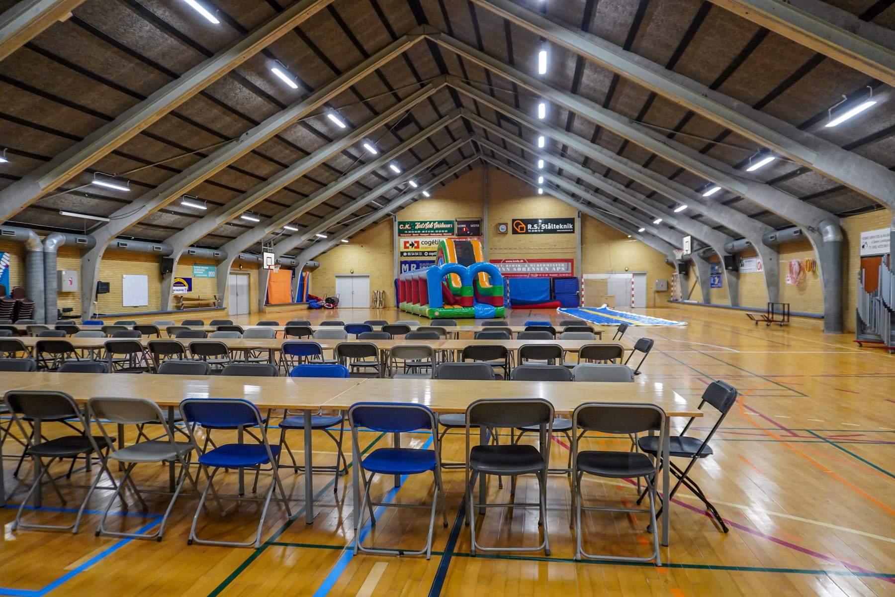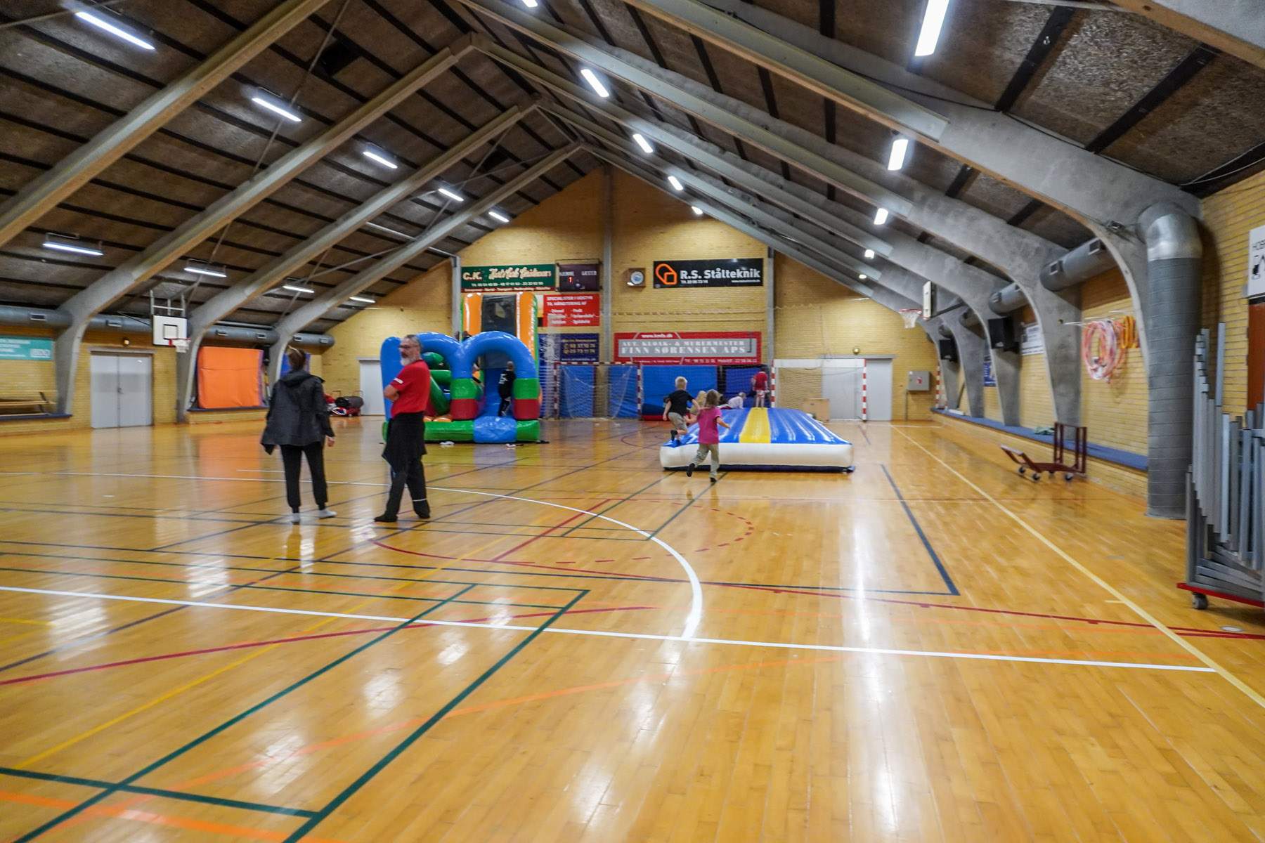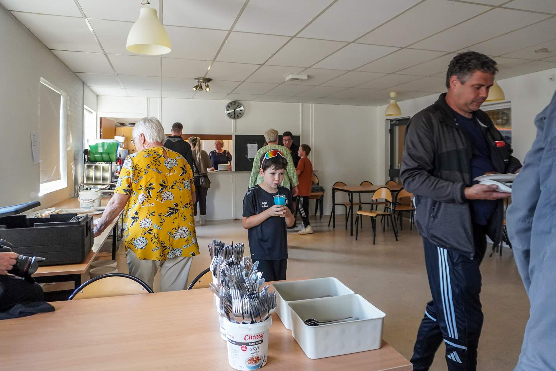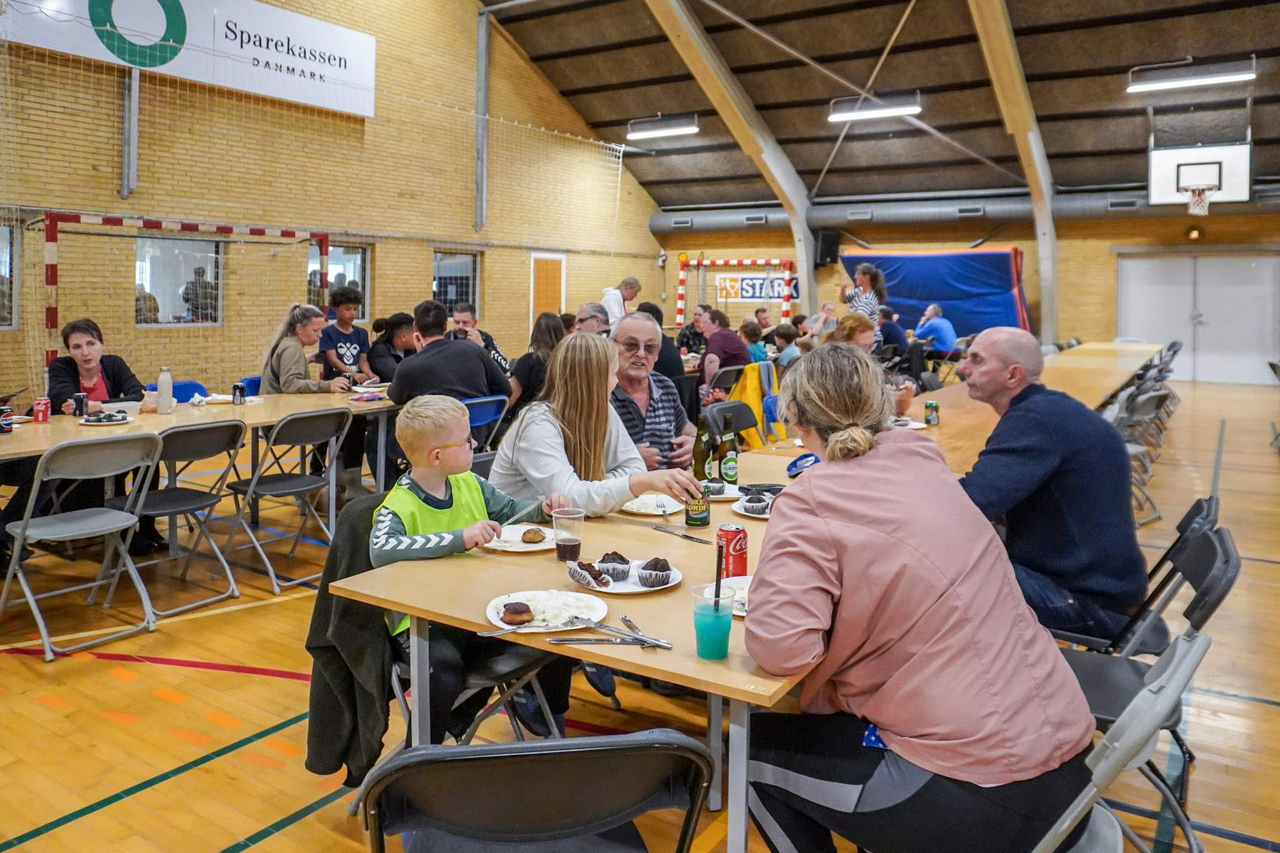 Efter to timer vendte alle tilbage til hallen, hvor der ventede fællesspisning. Stemningen var præget af røde kinder, sved på panden og et gennemgående smil. Nederst i hallen var en hoppeborg sat op, og børnene kastede sig frygtløst rundt, mens forældrene kunne synke ned ved langbordene og dele oplevelser fra ruterne.